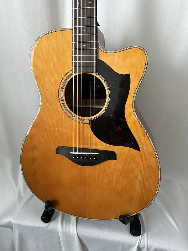 The Yamaha AC1M VN combines a comfortable Concert cutaway body with rich, balanced tone and stage-ready electronics. Featuring a solid Sitka spruce top and mahogany back and sides, this guitar delivers clear highs, warm mids, and a responsive dynamic range—great for fingerstyle, strumming, and singer-songwriter styles alike.